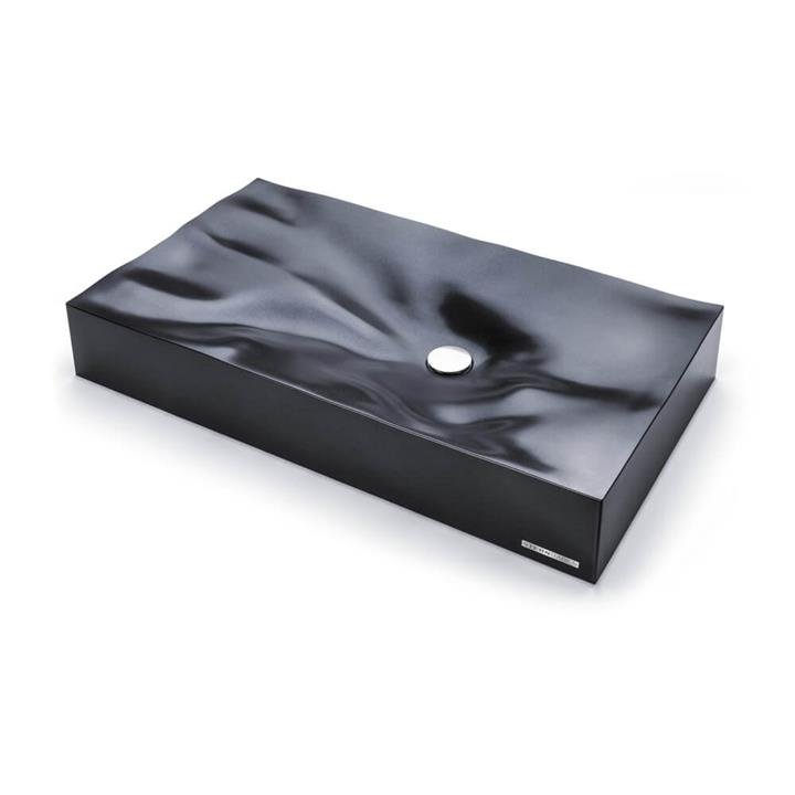 Dune Sani-Quartz Bathroom Basin – Curved Ripples – Above Counter Top – 815 x 465mm Satin Black