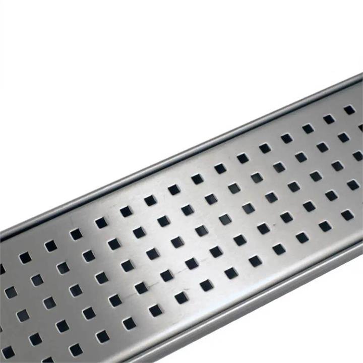Geo Top Linear Grate/Channel This linear channel grate has a simple yet bold geometric styling on its removable tray insert to complement a square-styled patio or garage flooring. It is also often used as a barrier drain on balconies and around pools as it can withstand high loads. Its industrial grate cover is removable allowing for easy cleaning. Any length, any outlet position! Set your exact requirements for width, length, outlet position and size for a perfect fit and easily integrated custom linear grate. Full 316 stainless steel – Marine grade and vehicle-rated Clean modern look – Linear drain grates are the new minimalist look Save on installation – This is a simpler option than a centre waste which requires four falls and many tile cuts The 22mm depth is one of the shallowest in the market for installation in most spaces Lifetime warranty from Shower Grate Shop Premium Specifications Made to measure in Australia 316 stainless steel for lifetime durability No plastic parts Three widths available (55mm, 90mm, 115mm) 22mm deep (50mm deep option for 90mm width) Outlet in any position and 5 outlet diameter sizes Fully Watermark Licensed for ATS 5200.040:2005 Lifetime Warranty