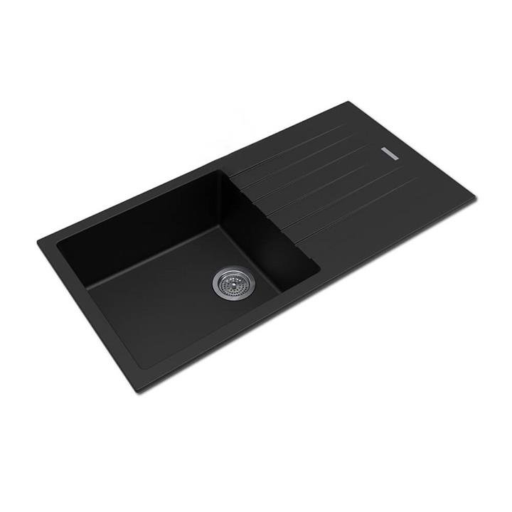 Granite Kitchen Sink – 1000 x 500mm Single Bowl with Drainer – Metallic Black