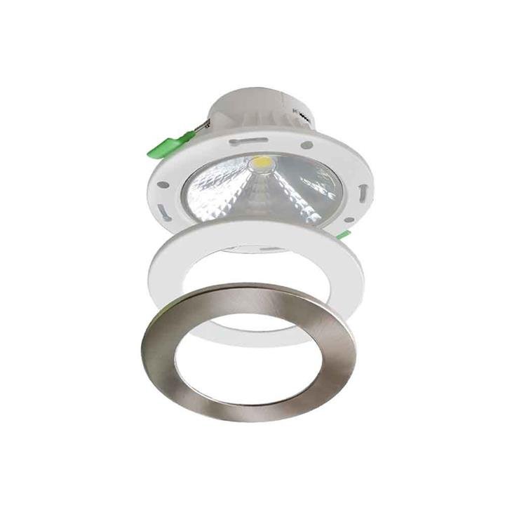 Customisable Interior Lighting The LED Downlight is efficient because of its SMD2835 LED chips. It can be installed in low-ceiling areas. The clear diffuser ensures that it can produce the brightest light possible. You can customise this by attaching a compatible magnetic faceplate with your preferred color. Furthermore, it has a tri-CCT function that allows it to be used in different areas of the house. Modern Style LED Downlight CUSTOMISABLE – The design ensures that a magnetic faceplate ring can be securely attached to its body MAXIMUM ILLUMINATION – It is able to produce the brightest light possible because of its clear diffuser ENERGY SAVING – Features LED lighting technology TRI COLOUR – It has 3 light-colour temperature options in one fitting to match specific zones inside the house Specifications Cut Out Size: Ø90mm Fixture Dimensions: Ø112mm x H 56.5mm Changeable Faceplate Type: Magnetic (Ø112mm) Frame Style: White round Housing and Heat Sink Material: Plastic and aluminum Diffuser Finish: Clear Flex & Plug: Included, 0.6m Input Voltage: 230V Rated Frequency: 50/60Hz Inbuilt constant current driver included Wattage: 10W LED Chips: Dacol SMD2835 Power Factor: 0.9 CRI: ≥80 CCT and Lumens: 3000K (800lm) / 4000K (950lm) / 5700K (850lm) Tri-CCT switch on the rear Suitable for use with sensors Beam Angle: 60 degrees Dimmable?: Yes IC-4 rated?: Yes Suitable For 2-way Switching?: Yes Double Insulated?: No Operating Temperature: -20 to 40 degrees Celsius IP Rating: IP44 Lifetime: 30,000 hours regular home use Package Inclusions: 1x downlight, 1x satin chrome faceplate ring, 1x warranty card, 1x installation card