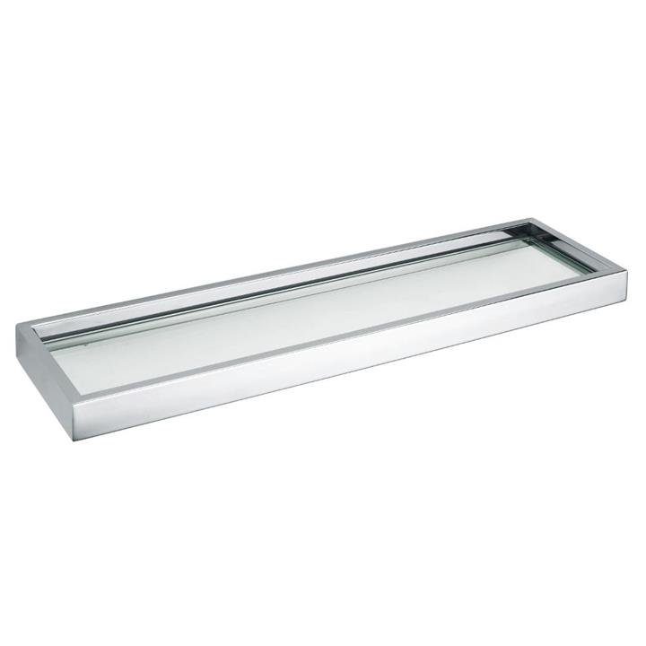 Simple and Bold Chrome Bathroom Accessories Montangna is built with a simple, bold geometric design and precision corners and edges exude strength and solidity. It has an excessively thick construction and a luxury chrome finish that suits any classic or modern bathroom. This sleek Montangna bathroom shelf provides a neat storage solution for the bath, shower, and basin areas. Its solid construction, strong tempered glass, and mirror-polished finish make it a practical addition to any bathroom renovation. Keep your bathing and grooming products neat and accessible by installing this shelf. Stainless steel: the smart choice This bathroom accessory is manufactured from high-grade stainless steel polished to a mirror finish. It may look the same as chrome-plated brass, but it is a much harder and durable metal and far less likely to bend or distort. Also, it will not rust as other metals can. Modern Bathroom Glass Shelf for your Bathroom Upgrade HIGH-GRADE STAINLESS STEEL – Harder, durable, less likely to distort, and will not rust BOLD GEOMETRIC DESIGN – Built with precision corners and edges, exudes strength and solidity LUXURY CHROME – manufactured from high-grade stainless steel polished to a mirror finish STURDY and SOLIDLY FIXED – Wall-mounted with anchor points 5-YEAR WARRANTY – Backed with 5-year manufacturer warranty against manufacturing faults Specifications: Length: 500mm Depth: 130mm Material: Stainless Steel and Glass Finish: Polished Warranty: 5 Years