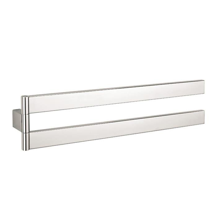 This sleek Montangna movable double towel rail boasts the same bold geometric design that exudes strength and solidity. This movable double towel rail is a popular towel storage solution for compact bathrooms. Flexible Double Towel Bar MODERN STYLE – With a simple, bold geometric design and precision corners and edges that exude strength and solidity STRONG AND SLEEK – Excessively thick construction and a highly polished finish that suits any modern bathroom POPULAR RANGE – Matches all the bathroom accessories in the contemporary Montangna series FLEXIBLE – With two bars that you can swing away from each other, so your towels will not touch each other MOUNT ANYWHERE – With a unique design that allows you to install the towel bars almost anywhere in your bathroom Specifications: Length: 412mm Height: 97mm Depth: 45mm Material: Stainless Steel Finish: Polished Warranty: 5 Years Simple and Bold Montangna is our newest range of bathroom accessories. Its simple, bold geometric design and precision corners and edges exude strength and solidity. It has an excessively thick construction and a highly polished finish that suits any modern bathroom. Quite simply, the Montangna range is set to become the new highest standard in design and quality for bathroom accessories. This 400mm towel rail complements all the Montangna bathroom range and square tapware we offer. This sleek double towel bar is a great towel storage solution for compact bathrooms. Its bars are movable, which means you have a flexible way of hanging your towels; you can swing the bars away from the wall separately, giving you room to hang multiple towels without them touching each other, and you can tuck the bars away when not in use. It is often difficult to find enough wall space to mount towel rails – however, this unique design has a single mounting point so it can provide a double towel rail almost anywhere in your bathroom! Note: Due to the minimalist design, ensure you fix the bracket to a strong support – i.e., stud or noggin. Stainless Steel: The Smart Choice This bathroom accessory is manufactured from high-grade stainless steel polished to a mirror finish. It may look the same as chrome-plated brass, but it is a much harder and durable metal and far less likely to bend or distort. Also, it will not rust like other metals can.