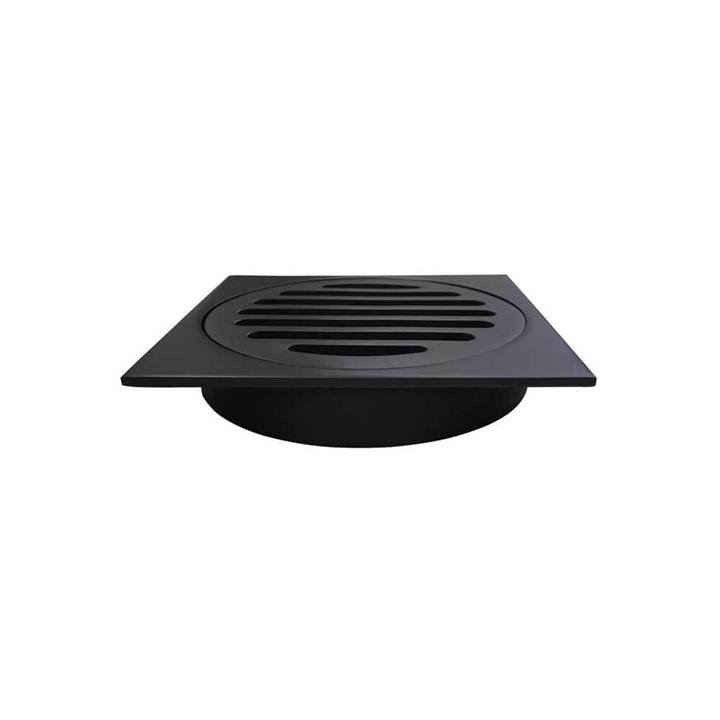 Square Brass Shower Centre Waste – 100mm Outlet – Matte Black