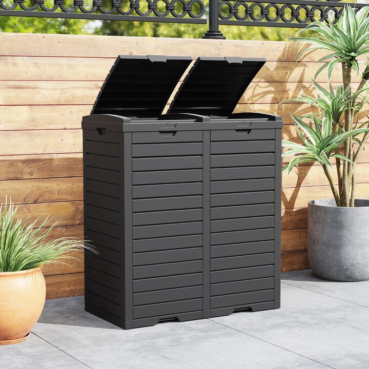 The dual-bin outdoor trash can is a solution for managing waste outdoors. Made of weather-proof PP, the waterproof and sun-protective trash can is perfect for keeping your backyard, patio, or garden clean and organized. With 2 spacious compartments, the large capacity waste bin is suitable for waste classification or dry and wet separation. And the removable pull-out drip tray facilitates easy collection of spilled liquids, thus preventing mess and promoting cleanliness. Equipped with 2 cut-out handles, this trash bin enables effortless movement from one location to another. The portable case cover allows for easy opening and closing of the lid, while the tiered lid design ensures a secure fit for trash bags, preventing unwanted spills and odors. Moreover, to safeguard the inner bucket from damage, this trash bin features anti-scratch mat. Bullet Point: Efficient Waste Separation: The outdoor trash can features two approximately 118L buckets, offering a large capacity for efficient waste management. Whether you need to classify different types of waste or separate dry and wet waste, the trash can provides the perfect solution for your needs. Weather-resistant Material: Constructed of waterproof and sun-proof PP material, the outside waste bin can withstand outdoor elements for years. Meanwhile, the smooth and stain-resistant material allows for easy maintenance. Easy to Clean and Use: The removable pull-out drip tray of the double-bin trash can is designed to make the collection of spilled liquids a breeze. With a tiered lid, you can conveniently secure the trash bags in place, preventing spills and odors for a pleasant environment. User-friendly Features: Equipped with 2 cut-out handles, the trash can can be easily moved to any location you want. Furthermore, the inner buckets feature an anti-scratch mat to ensure the longevity of the outdoor garbage bin. Multi-scene Usage: The large capacity waste bin is a practical choice to keep your indoor and outdoor space organized and tidy, which is suitable for a garden, deck, backyard, patio or kitchen. The overall dimension of the classified garbage bin is 77 x 40 x 86 cm(L x W x H). Features: 235 L double bucket trash bin can hold recyclable waste and hazardous waste Removable pull-out drip tray makes it easy to collect spilled liquid Made of easy-to-maintain and weatherproof PP material for a long lifespan Equipped with 2 cut-out handles for easy movement Easy to open and close the lid with a portable case cover Easy to secure trash bag with tiered lid(step 1: open the inner lid; step 2: put on and fix the trash bag; step 3: close the lid) Featuring an anti-scratch mat to protect the inner bucket Suitable for 118 L trash bag Applicable indoors and outdoor, including yard, deck or kitchen Specifications: Colour: Grey Material: PP Overall Dimension: 77 x 40 x 86 cm (L x W x H) Each Bucket Inner Size: 35 x 34 x 79 cm (L x W x H) Overall Capacity: 235 L Net Weight: 11 kg Package Includes: 1 x Trash can 1 x Instruction Box Qty:1(May vary by batch)